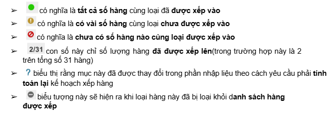 Thanh Bảng danh sách kết quả sẽ cho người dùng biết những mặt hàng nào đã được xếp lên và những mặt hàng nào chưa được xếp lên: