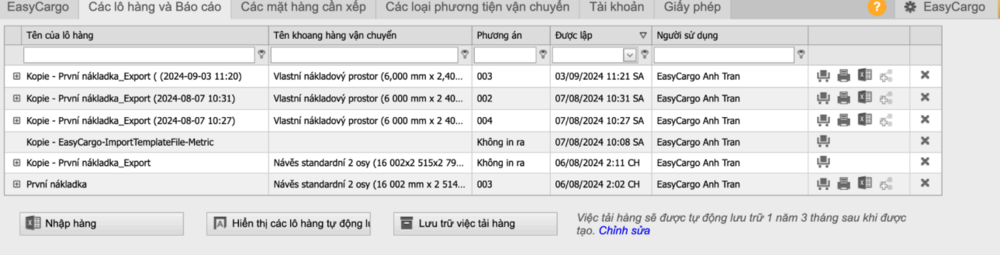 Tất cả các lô hàng đã lưu sẽ được tìm thấy trong tab Các lô hàng và Báo cáo. Số lượng lô hàng đã lưu không được giới hạn. Xin lưu ý rằng mỗi lô hàng có thể có tối đa 999 phiên bản lưu, vì vậy người dùng nên đặt tên mới cho mỗi lô hàng mới.