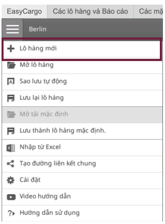 Nếu muốn bắt đầu một lô hàng mới hoàn toàn, hãy vào màn hình lập kế hoạch xếp hàng trong tab EasyCargo và nhấp vào ba dấu gạch ngang ở góc trên bên trái màn hình, cạnh tên lô hàng.