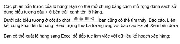 Để biết thêm thông tin, bạn cũng có thể xem các video về việc quản lý các kế hoạch xếp hàng đã lưu, cũng như chia sẻ kế hoạch xếp hàng thông qua báo cáo, hoặc qua đường link hay Excel.