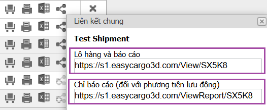 Bạn có thể sử dụng liên kết công khai (tùy chọn thứ tư) dẫn đến mục Các lô hàng và Báo cáo để xem lô hàng ở dạng 3D kèm báo cáo. Hoặc chọn liên kết Chỉ báo cáo để hiển thị riêng báo cáo. Tính năng này cũng phù hợp với thiết bị di động.