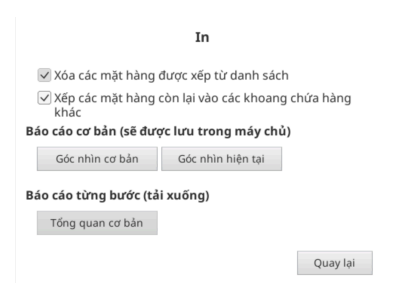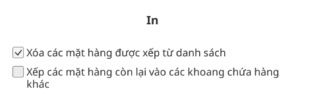 Khi tạo bản in đơn hàng cơ bản, chỉ cần đánh dấu vào ô "Xếp các mặt hàng còn lại vào các khoang chứa hàng khác" và toàn bộ hàng hóa sẽ tự động được chia ra các khoang theo cần thiết.
