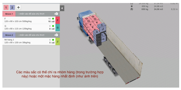 Xin lưu ý rằng EasyCargo ưu tiên xếp chồng các mặt hàng theo chiều cao để tận dụng tối đa diện tích sàn của khoang tải. Nếu muốn ngăn chặn điều này, hãy thể chỉnh cho các mặt hàng thành không thể xếp chồng, điều chỉnh thủ công kế hoạch xếp hàng hoặc chia các mặt hàng thành các nhóm và cấm xếp chồng các nhóm này.