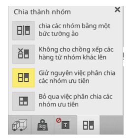 Các nhóm (ưu tiên) cho phép bạn xác định thứ tự xếp hàng. Hàng hóa trong Nhóm 1 sẽ được xếp trước, tiếp theo là hàng hóa trong Nhóm 2, sau đó là Nhóm 3 và cứ thế tiếp tục. Vì vậy, người dùng có thể chỉnh kế hoạch xếp hàng dựa trên thứ tự mà xe theo các điểm đến cuối cùng.