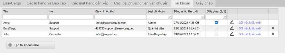 Trong phần Người sử dụng, trong cột Giấy phép, bạn có thể dễ dàng xem giấy phép được chỉ định cho ai (được đánh dấu màu nước biển):